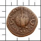 PONTIF - M[AX T]R - POT XXXVII. Großer mit einem Band verzierter Globus. Davor ein nach unten weisendes Steuerruder. Rechts unten davon ein kleiner Globus. Zu beiden Seiten: S - C. |