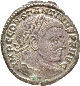 Obverse: IMP C CONSTANTINVS P F AVG. Büste Konstantin I. mit Lorbeerkranz nach r.